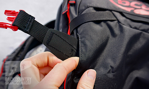 One issue I had was my G3 Speed Tech Probe (52.8cm collapsed) does not fit inside the avalanche tool compartment, I had to use a smaller BCA 240 for the photos above. I also tried one of the carbon Black Diamond probes and that one stowed fine, but if you have a longer probe I’d recommend measuring (around 42cm seems to be the cut off). I was also indifferent to the compression straps on the sides. Unless you were using this pack without the airbag and carrying skis in an A-frame, they just seem installed to tempt you. There are so many other places to attach gear I’d deem them unnecessary.