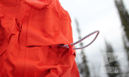 Zip-out powder skirt. Removing this can bring down the overall weight of the jacket.