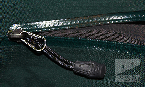 The key clip located in your left side pocket and hangs from the top, keeping you from digging to the bottom of your pocket for your keys. A secure inner pocket would have been nice, but two mesh pouches on either side are well constructed with elastic tops and are large enough for even the biggest goggle on the market.