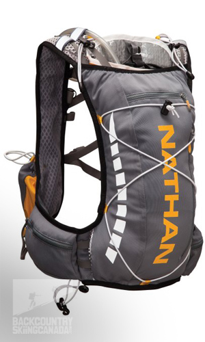 The Nathan VaporWrap vest is a technical race vest designed for long-distance running. Unlike a traditional backpack, which rests on the wearer’s back and is held on by straps that arc around the shoulders, the race vest wraps around the torso. This unique design is used in an effort to reduce bounce, or the uncomfortable upward and downward movement of weight during a runner’s stride.