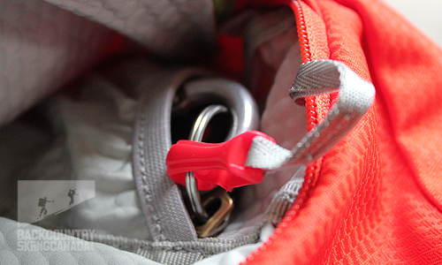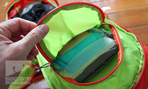 On the interior of the pack (against the back) you’ll find the zippered hydration pocket and the included three litre reservoir. The reservoir comes with a QuickConnect hydration system which lets you easily disconnect the hydration hose for fast filling.