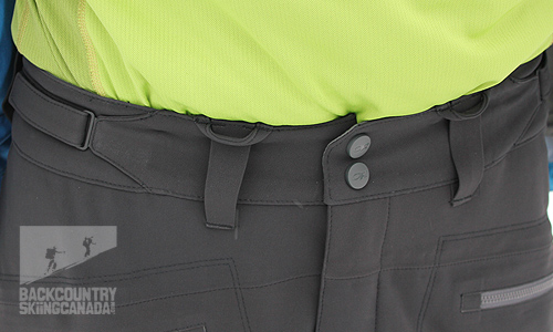 Range of motion is the main feature of the OR Valhalla Pants thanks to the generous cut and flexible Gore Windstopper X-Fast Soft Shell material. Whether you are skiing down or skinning up you need the flexibility for deep lunges and long strides and the Valhalla pants offer this in spades. To ensure they stay up on your hips and don’t migrate down given the gravity of your pack Outdoor Research has incorporated an adjustable velcro hem. Yup, just like the ones you see on kid’s pants. This allows a snug fit without the need for a belt or suspenders, however belt loops are included should you so desire.