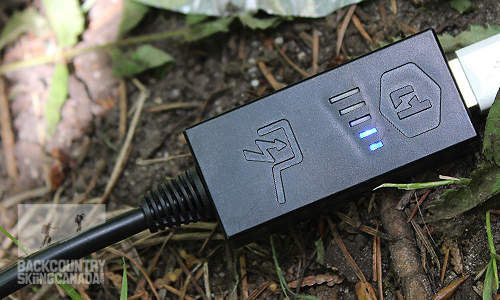 This product is very simple to use: simply add water to the PowerPot and apply to heat source. For best results use cold water, (keep adding snow or cold water for a longer charge) and apply direct heat to the bottom of the pot. Attach the charging cable and connector to the pot between the silicon handles. Both pot & lid/bowl/skillet handles and cords are flame resistant but the manual warns to exercise extreme caution when operating this product as “stoves using compressed gasses, open flames, hot surfaces and boiling water are all inherently dangerous”. Within 10-30 seconds, enough power will generate to allow charging devices from the USB Port, located on the charging meter, which will denote current power output from 1-5 Watts. The included charging tips (Apple, Micro, Mini USB) should be compatible for most of your backcountry devices, from rechargeable headlamps to smartphones, cameras and music players. Use the provided lid/bowl/skillet to help water heat faster and cook food while charging your electronic devices. Be sure to never let the PowerPot run dry as it may permanently damage the product. Wash with soap and water and keep everything it the mesh bag for storage.