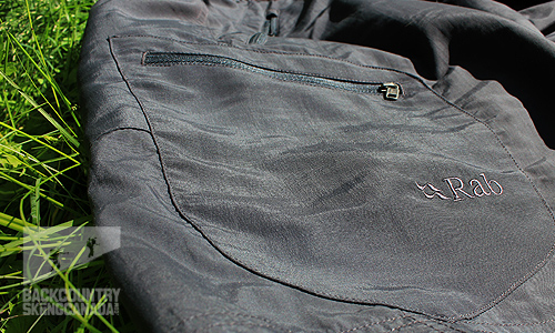 With all of these garments I am a fan of the subtle branding that Rab employs. The Rab logo is in the typical left chest location but the contrast is kept to a minimum so that it's not the first thing you see, a nice change to being a walking billboard.