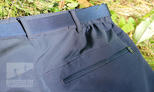 The Rab Alpine Trek shorts have been a staple on spring hikes here in the Kootenays as well as while just lounging around waiting for the rains to clear this 'monsoon-June'. They are ideally suited to wet weather adventures and the odd jump in the lake as the fabric dries super quickly. The fabric seems to be pretty tough and so far has taken the abuse of the trail. The biggest benefit of the Rab Alpine Trek shorts has to be the four zippered pockets and perforated fleece lining (ok, so that was two). To truly appreciate the benefits of the pocket lining you simply have to try it. The only possible improvement we can think of would be the addition of laser cut drain holes in the cargo pocket.