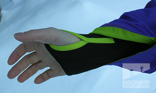 Stretchy Lycra® inner cuffs with thumb loop and easy to close velcro cuffs