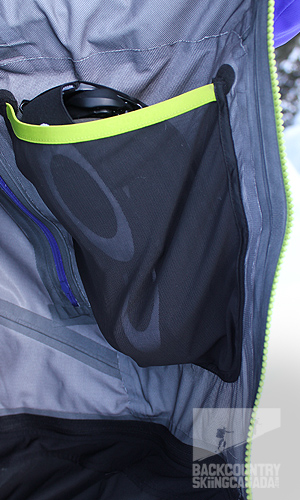 Another well placed zipper pocket on the lower thigh and leg vents with mesh backing, let the heat out, keep the powder from coming in.