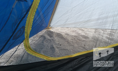As two-person tents go the Sweet Suite 2 does indeed feel generous with space, providing a peak height of 41 inches at the head of the tent there is ample headroom for sitting and at just over 7 ft long it would easily accommodate the height of most NBL players. It’s evident that Sierra Designs put a lot of time and effort into the structural details to enhance the liveability of the interior space. The innovative pre-bent pole structure is light-weight, simple and intuitive to assemble. Though my testing began late in the season last Fall so I have yet to put it through its paces I feel more than comfortable with the idea of taking this out on a multi-day backpack trip in unpredictable mountain weather. For a semi-freestanding tent, I found the structure to be quite sturdy even without pegging thanks to the hub-tripod pole geometry. The bathtub construction is articulated to the fly, sealed and reinforced thoroughly but not excessively so it remains efficient with weight but highly effective at keeping you dry (with the fly on of course). ‘Thorough but not excessive’ may actually best describe the approach Sierra Designs have taken in the design and detailing overall. The quality of materials and detailing is exceptional.