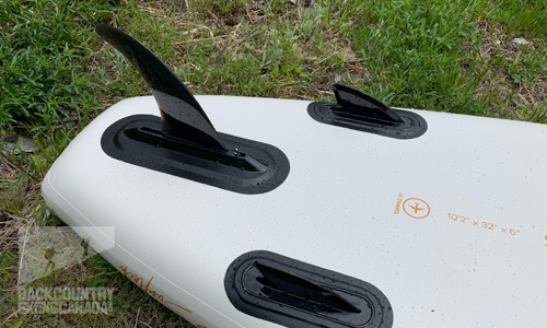 Most inflatable SUPs use three small permanent fins but the Air Travel Alta SUP only has two with a removable centre fin which provides a greater amount of versatility. Paddle with all three fins for optimum stability and tracking on flat water or remove the centre fin to navigate shallower creeks and rivers. The removable centre fin provides the best of both worlds and the flexibility to paddle the Air Travel Alta SUP on any type of water.