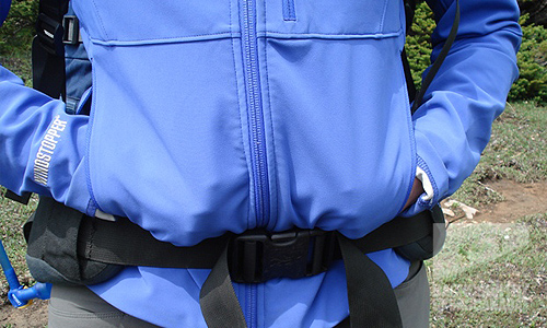 Overall, the Alpine Project is well designed for alpine climbing. Made from Gore Windstopper fabric, the jacket will keep you dry and warm in light precipitation or wind, even as a stand-alone piece. The tight fit also means that the soft shell fits well under warmer layers as well as under a harness. The three harness compatible pockets allow you to stash your stuff and warm your hands without loosening your harness or waist belt.