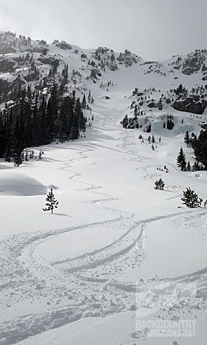 Speaking of options, here is a shot we did into Zimmer Creek; more specifically, Blue ice Bowl. We didn't see any blue ice. Scha-weet.
