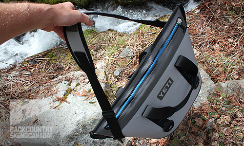The double stitch reinforced handles are designed to help with hauling, however you want to carry it. The shoulder strap is comfortable and sports anti-slip grip but may also be detached if not needed. A single briefcase style handle allows you to lift the cooler with one hand from the centre, and if the weight is too much, two handholds—one at each end, will do the trick. The nylon handle straps have sixteen hitch points for attaching carabineers, bottle openers, key chains, etc. Even further down, near the bottom of the cooler are four more attachment points (two a side), this time made of more rugged plastic for securing it to your pleasure craft.