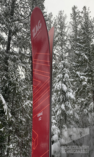 The minimally rocketed tails on the UBAC 112 Skis means that there is more ski in contact with the snow and turns are finished with power and stability. It also means that you can easily put kick turns on the skin track when the slope angle begins to climb. Churning out vertical on the skin track is fairly effortless and makes you wonder how ZAG can make such a fat ski so light.