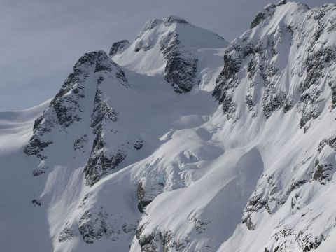 Some warming sluff rips down Mt. Howard as Peter skis the East Chute off the face of Howard...