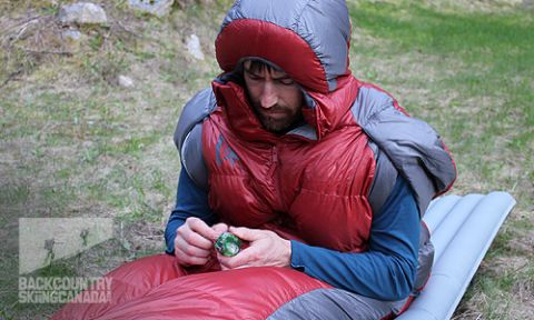 With a comfort rating of only 4°C and a Limit rating (more for us guys) of -2°C it was easy for me to find the Mobile Mummy 800 warmer that comparable sleeping bags. My nights out in the field were between 0°C and 5°C and were no problem for the Mobile Mummy. No cold spots of dead air because I was using the entire bag to sleep in and it moved as I did. It's also a simple matter to get your arms out, unzipping the centre zipper to create room for your knees to move or to pull your legs out of the bag completely without ever having to actually leave the sleeping bag. This opens up a world of possibilities for staying warm yet being functional.