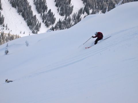 Third day, no trail breaking. Skied Mt. Crowe at the Strawberry Pass near Nancy Greene Lake with a friend from Rossland. Four laps on E, N and W aspects in good snow. First time to that area so it was nice on the eyes. Lots of new areas to scope out from the top.