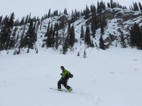 Lately, I've been home again, and not inclined to leave. So I've been re exploring this area, amongst others. Exploring the idea that the Alberta Rockies can still host some truly great skiing in winter, not just spring ski mountaineering. Below our favourite pillows, we also found some mellow open powder shots for Argentinian Niki, and I think he liked it...