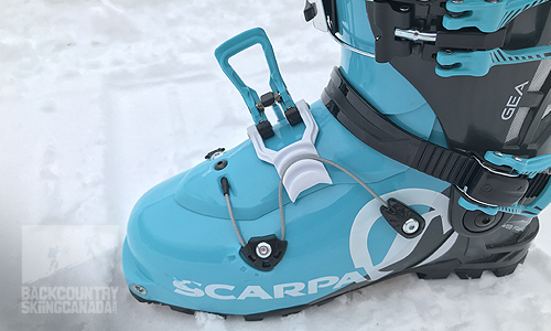 Note that this ski is not for a woman who spends most of her time on-piste. For that kind of skier, you should look at the Scarpa GEA RS we talked about earlier. The "regular" Gea is for women who ski the occasional 1/2 day at the resort—but who's real fun is had in the back/slackcountry. It's tough to quantify, but I'd say a good ratio for the Gea would be 25% lift-serve, 75% touring.