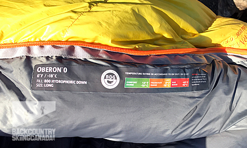 Here's the nitty gritty in terms of how warm it'll keep you. All the good bags these days seem to have this rating system. In essence, it admits that the "comfort range" of the Oberon is 14°F or -10°C. If the mercury drops to -40°C/F, you're going to be in trouble.