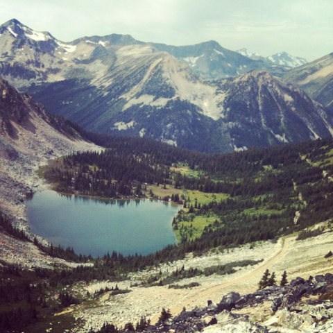 I know I've said it before in other Tuesday hiking posts, but this is one of my favorite areas in the coast mountains. It is just so incredibly beautiful in every direction. This is the view looking back - you can see the road faintly on the right and a gorgeous alpine lake below.