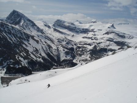 Luckily, the clouds broke and we had an amazing run down in perfect corn snow! As a bonus after last weekend's bushwack, we skiied straight to the car! A nice break for our bodies after the last few days of beating ourselves up mountain biking.
